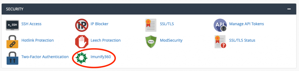 U cPanelu hosting paketa možete pronaći ikonicu “Imunify360” kao što prikazuje slika: